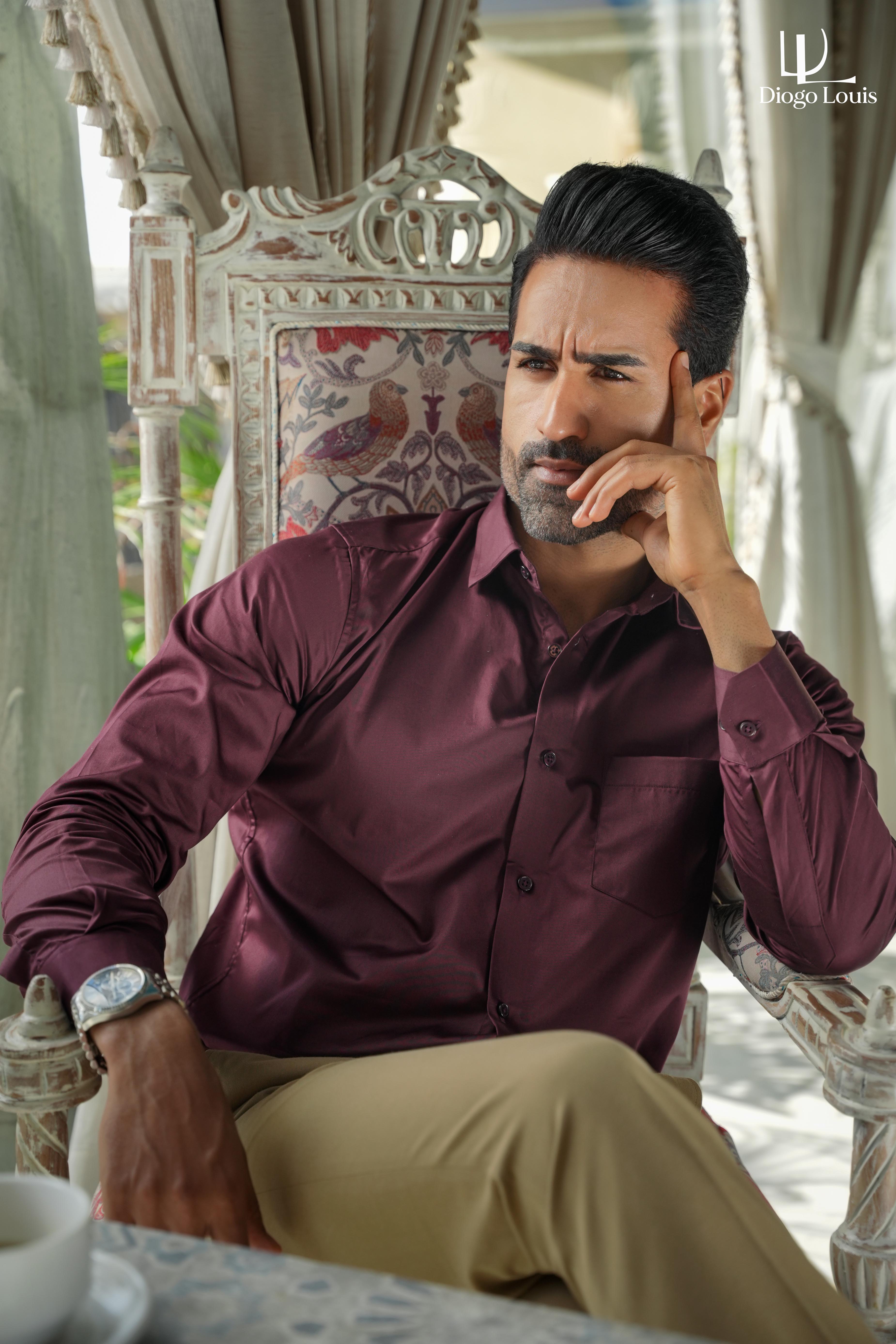 Olive Green Solid Plain Formal Shirts for Men - 100% Cotton